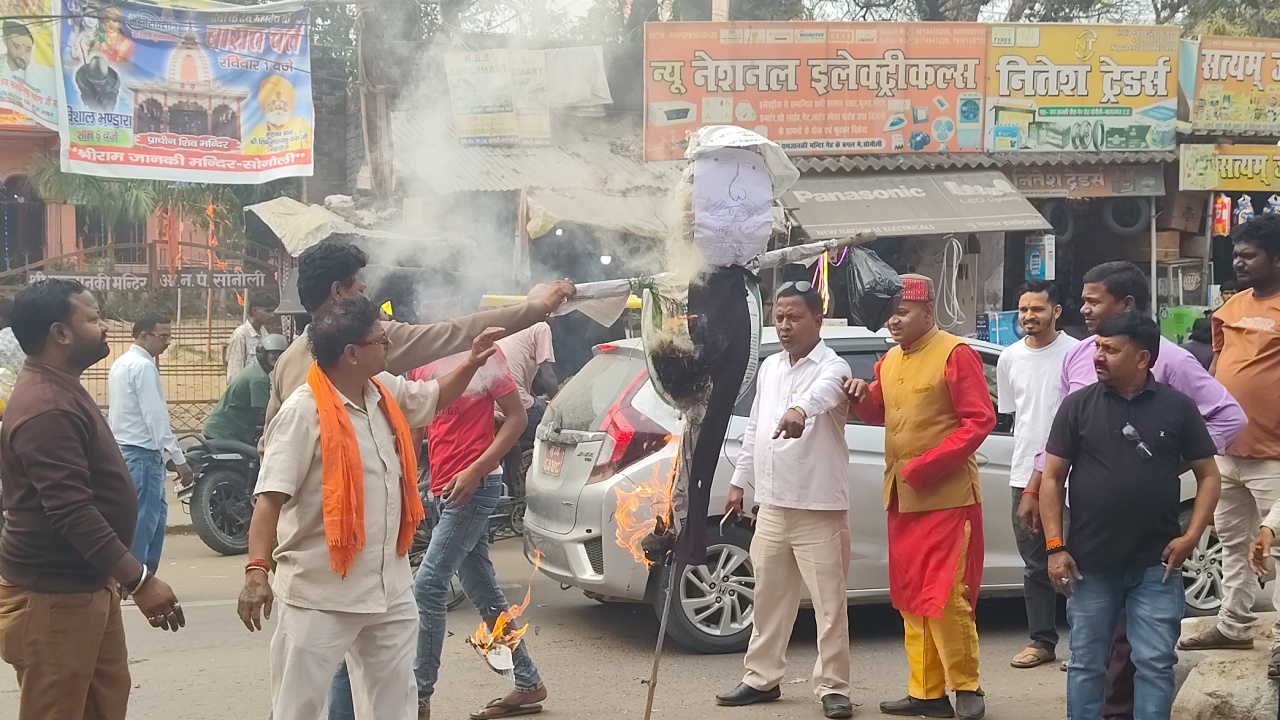 सीएम योगी की माता के खिलाफ अशोभनीय टिप्पणी करने का आरोप लगा कर बुधवार की दोपहर स्थानीय भाजपा नेता प्रेम जायसवाल के नेतृत्व में हिन्दू संगठनों के लोगो ने कस्बे के रामजानकी मंदिर चौराहे पर बिहार के मौलाना सलीम का पुतला फूंका। लोगों ने जमकर नारेबाजी करते हुए अपना कड़ा आक्रोश व्यक्त किया। और कार्यवाही की मांग की। साथ ही गृहमंत्री भारत सरकार को संबंधित पत्र मौके पर पहुंचे सोनौली पुलिस को सौंपकर दोषी के विरुद्ध कानूनी कार्रवाई कर जेल भेजने की मांग की। कहा कि बिहार के मौलाना की ओर से सीएम योगी आदित्यनाथ की माता के खिलाफ की गई अशोभनीय टिप्पणी भावनाओं को ठेस पहुंचाने वाली है। इस दौरान मंडल उपाध्यक्ष प्रेम जायसवाल, ओम प्रकाश वर्मा, जिला उपाध्यक्ष अनत जायसवाल, मंडल मन्त्री राजू भारती, राजू कुमार, संदीप सिंह, नन्हे, प्रदीप , समशेर चौधरी सहित कई लोग मौजूद रहे।